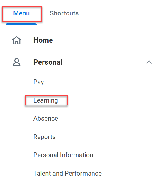 - Under Menu, select Learning