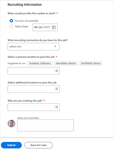 - If desired, enter a comment for the job requisition.