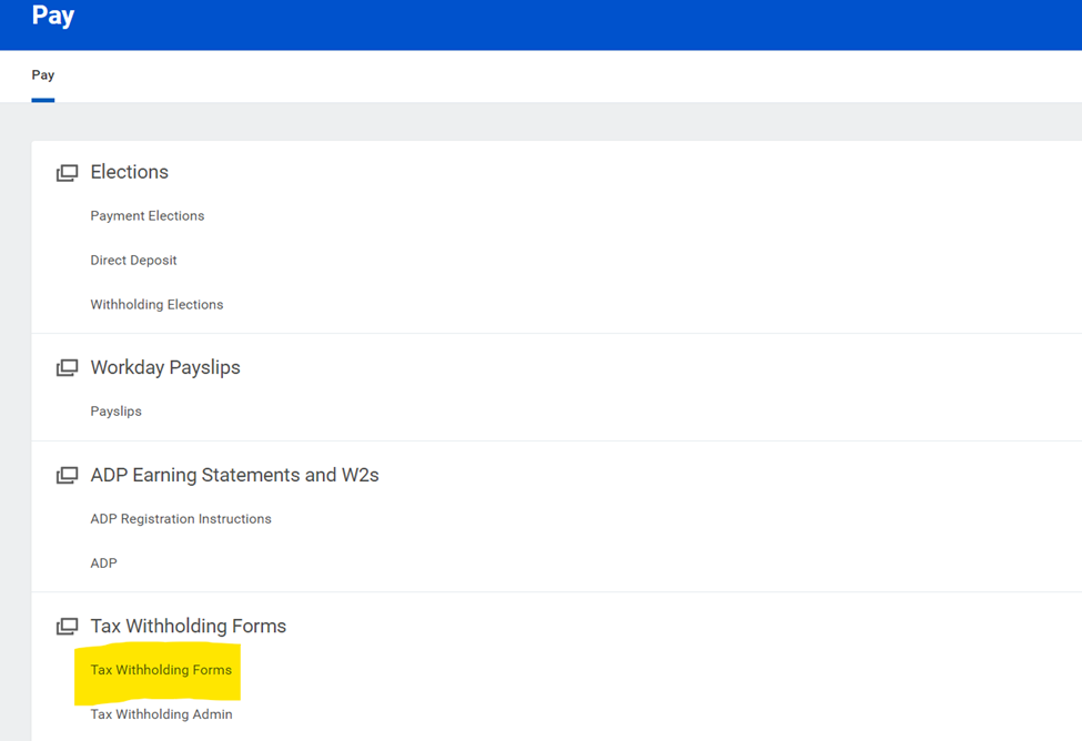 - In the Tax Withholding Forms section, click Tax Withholding Forms.