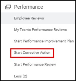- From the Performance menu on the right-hand side of the screen, select Start Corrective Action.