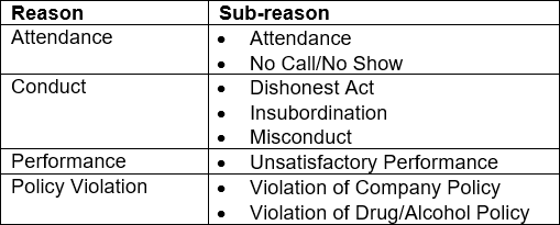 - From the Corrective Action Reasons drop-down menu, select Reasons for Employee’s Country, then the employee’s country, then the applicable reason and sub-reason for the corrective action: