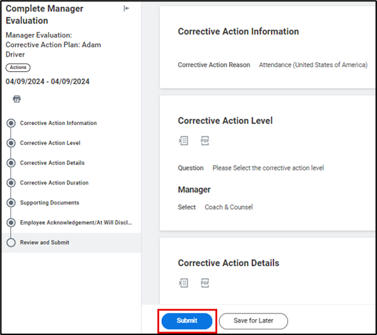 For Managers looking to initiate a corrective action for one of their employees, this document will guide you through the following tasks and processes: