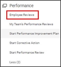 - From the Performance menu on the right-hand side of the screen, select Employee Reviews.