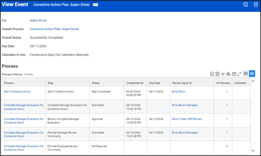 Monitoring a Corrective Action - How to view the status of a corrective action for one of your employees.