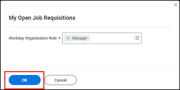 - If you are the Manager on the job requisition, it will automatically populate. Then, click OK.