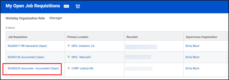 - You may be asked to screen the candidate’s application if the Recruiter chooses to send it over to you. In such case, you will receive a task in your Workday My Tasks Inbox titled Hiring Manager Submission with the candidate’s name. Review their application, then select Move Forward and Proceed with Interview.