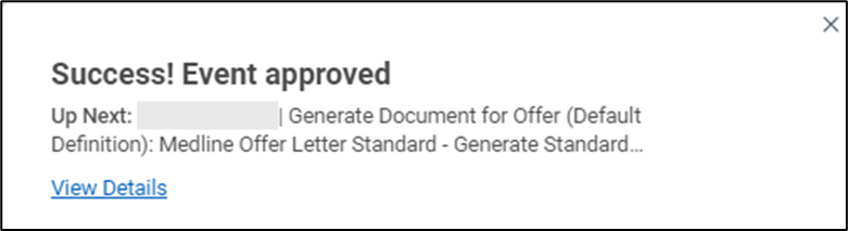 - If approved, the offer will be routed to a superior in your organization for approval. The name will be mentioned in the confirmation notification.