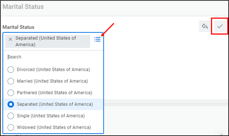 - Once you have clicked the Edit icon (), you can update your information via the drop-down menus. Click the Checkmark icon to save your changes.