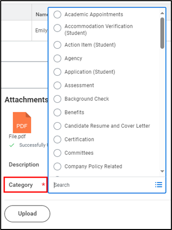 - Once you upload the document, select the Category it falls under.