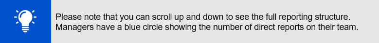 Once selected, the Org Chart will show you a hierarchical overview, including your direct reports (if any), peer colleagues and supervising manager.