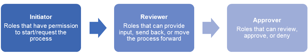 A Business Process includes tasks that must be completed for an event to occur, the order in which they must be completed, and who must complete them. All activity in Workday is organized by business process. Typically, a business process has someone who initiates, someone who approves, and someone who receives a notification.
