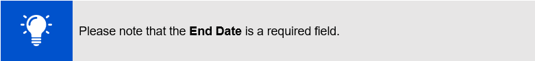 - Select a Begin Date that is today’s date or a date in the future. You cannot select a date in the past.