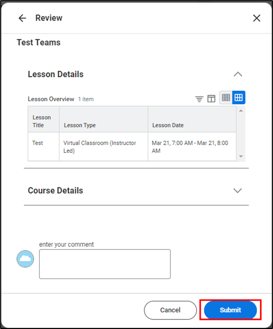 - Review the course details and click Submit.