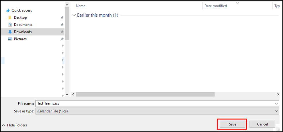 - Save the ICS file to your computer.