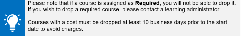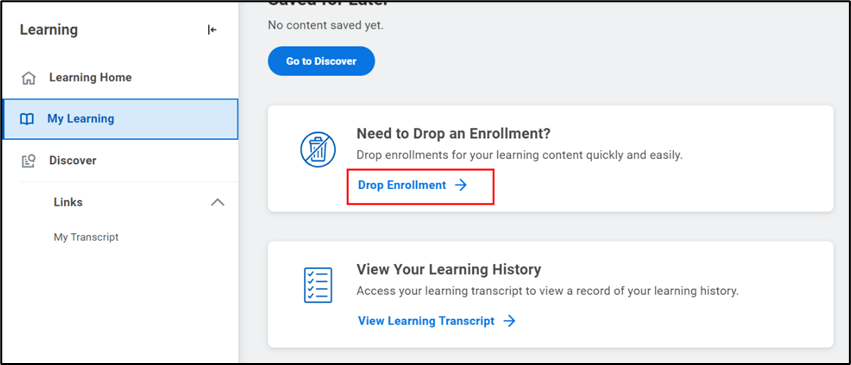 - Another way to drop a course is by clicking on the Learning application and then clicking My Learning from the navigation panel on the left-hand side of your screen.
