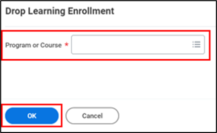 - Select the Program or Course you wish to drop from the drop-down menu. Click OK to continue.