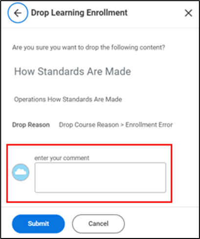 - Next, add any comments if applicable then click Submit.