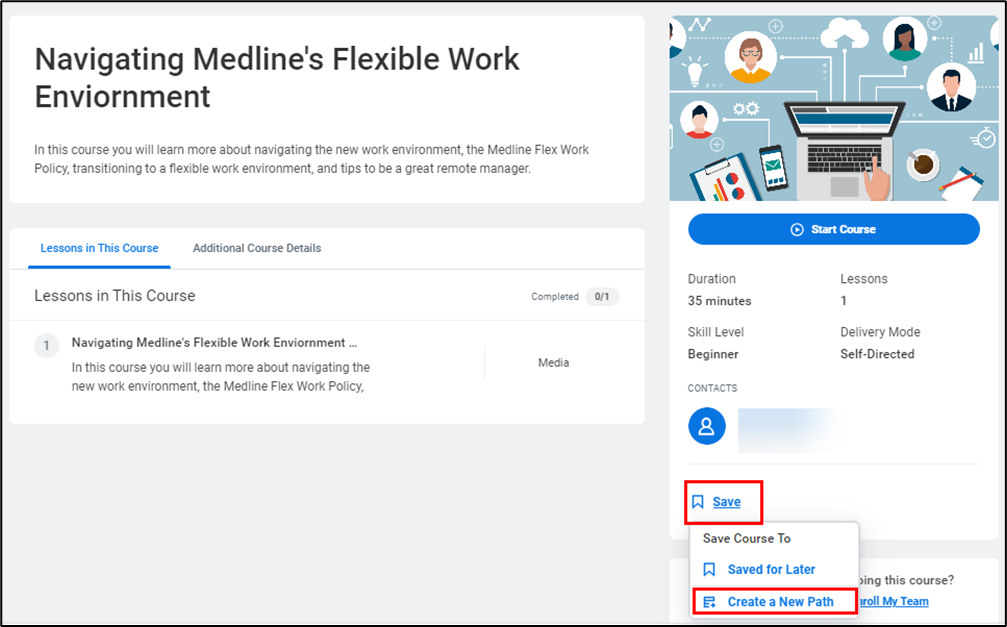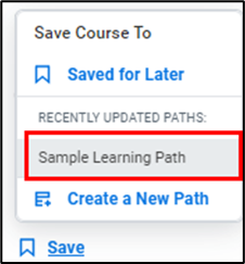 - Click a course name. To add it to a new learning path, click save then create learning path.
