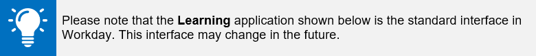 Workday offers a variety of digital and blended/instructor led learning courses for Employees to complete. Learning how to navigate the Learning Dashboard will make it easier to access required training and search for content that interests you.