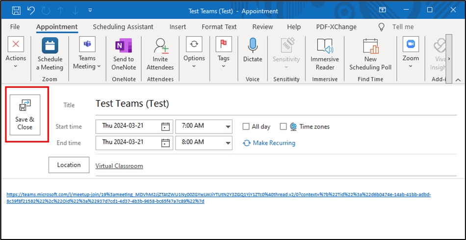 - Next, click the downloaded ICS file. In the invite that appears, click Save & Close to save the meeting invite to your calendar.