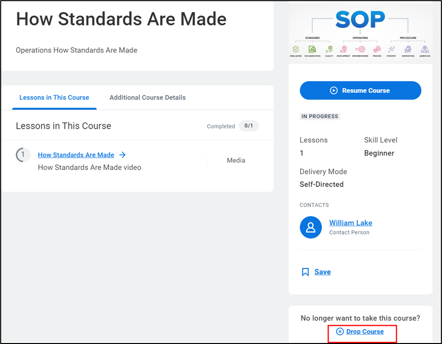 - If you accidentally enrolled in a course and want to drop it, navigate to the course overview page. Click Drop Course.