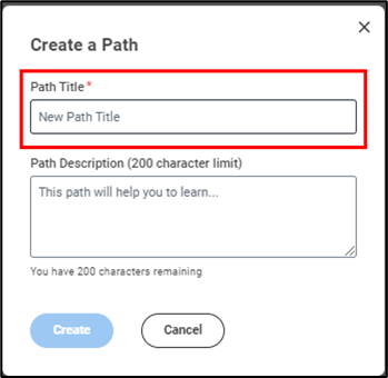 - Type a name for the learning path in the path title field and click create.