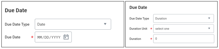 - If the course is Assigned as Required Learning, you will be prompted to set a required Due Date. A Due Date can be assigned using a specific Date, or a set Duration in Days, Weeks, Months or Years that the employee must complete the learning within.