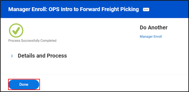 - A confirmation page acknowledging that the process has been successfully completed will pop up. Click Done to return to the course overview page.