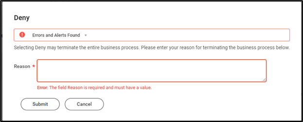 - If you Deny the course, you must provide a Reason for doing so. Click Submit when you’re done.