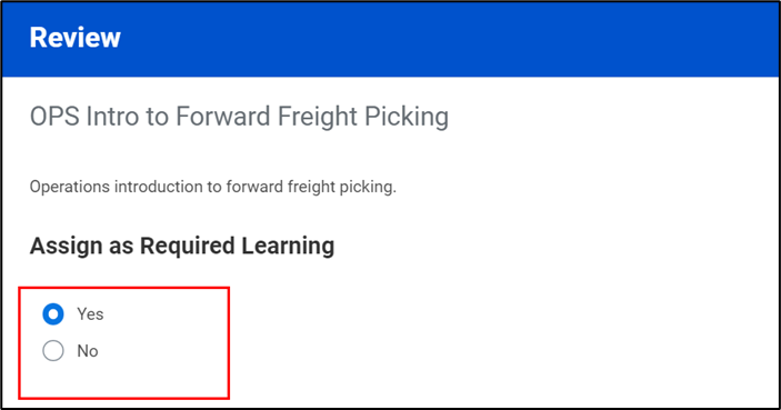 - Indicate whether the course is Assigned as Required Learning using the Yes/No buttons.
