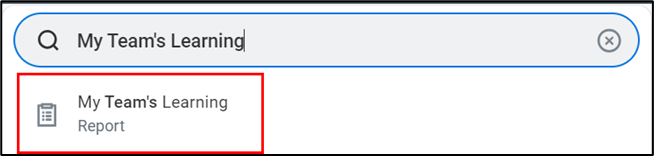 - To get started, type “My Team’s Learning” into the Workday search bar and click the My Team’s Learning Report from the search results.