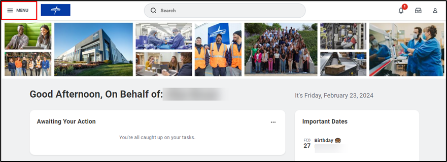 - From your Workday homepage, click the Menu icon in the top right-left corner of the screen. Select the Absence application.