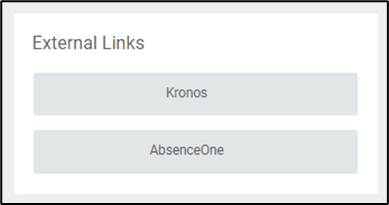 - Next you will see the External Links: Kronos and AbsenceOne. Click the tile to be directed to the applicable external system.