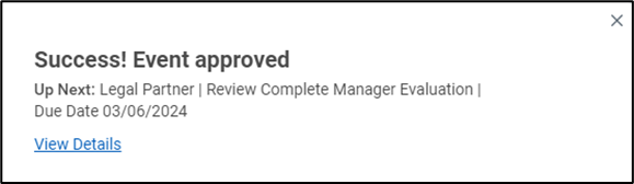- If you approved the PIP submission, you will receive a confirmation notification. The task will be routed to the Legal Partner for their approval.