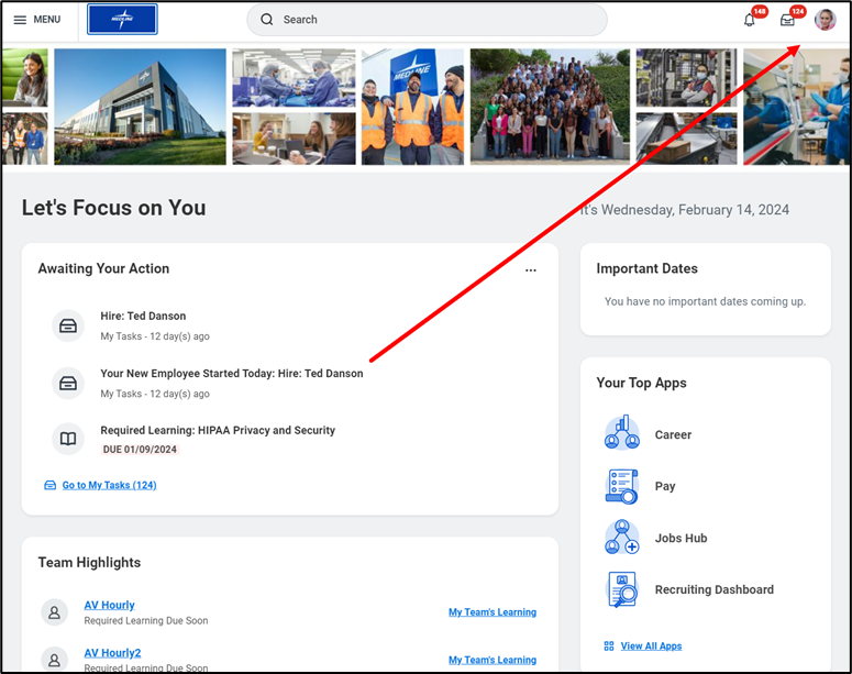 - Click on your Workday Profile located in the top right-hand corner of the page.