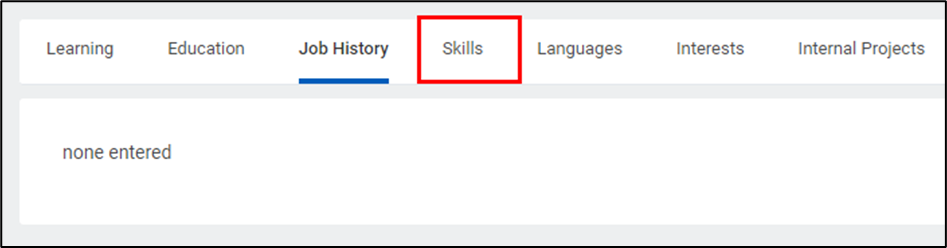 - Return to the Career tab on your Workday Profile. To add or edit a skill, click Skills in the top bar on the right-hand side of the page.