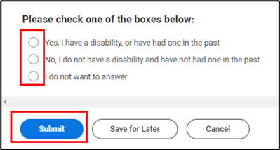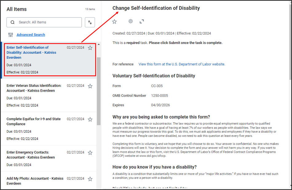 - Next, enter any Self-Identification of Disability. Select the task and read through the information.