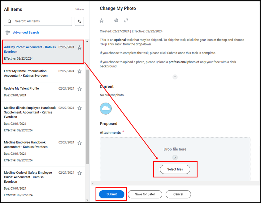 - If you would like to add a profile picture, select the Add My Photo task. Next, Select Files to upload your picture and click Submit once complete.