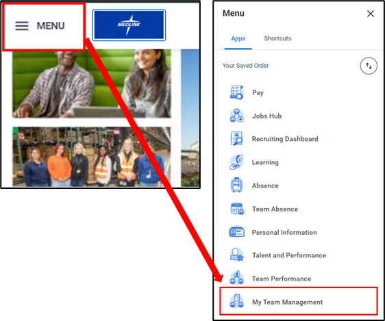 - To get started, click on the Menu icon in the top left-hand corner of your screen. Select the My Team Management application.