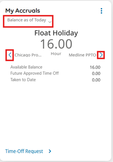 You can view your hourly balances for multiple accruals for any day directly on the My Accruals tile.