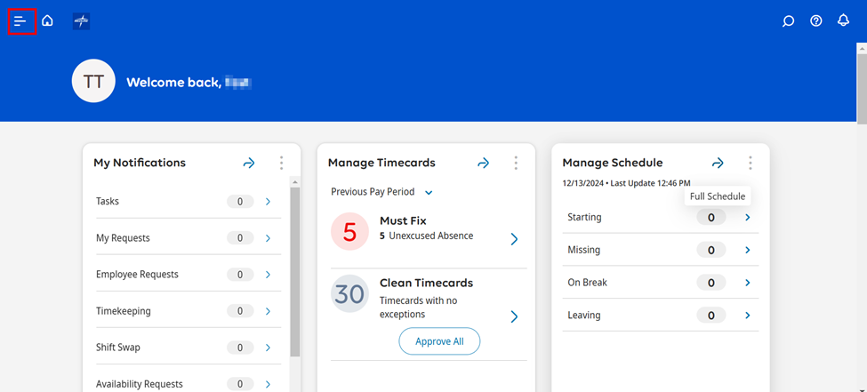 - Click on the Menu option present on the top left corner of the home page as highlighted in the below screenshot.