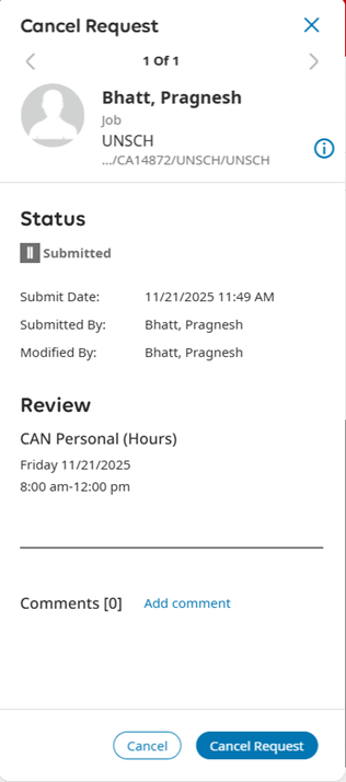 4. Select Cancel Request.
