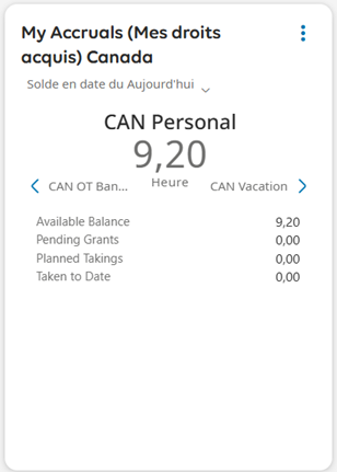 Sélectionnez l' onglet Accumulation au bas de Ma feuille de temps pour voir vos soldes.
