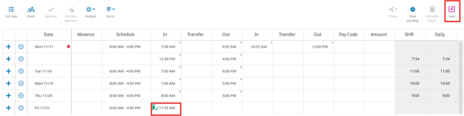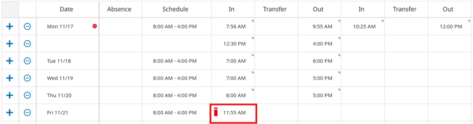 2. Right-click on the exception indicator on the timecard to access the Punch Actions menu.
