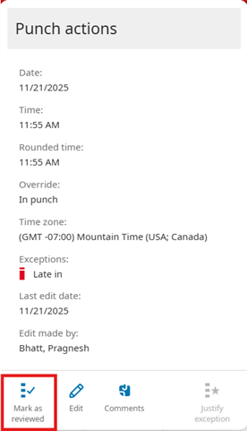 3. Review the Punch Actions and select Mark as Reviewed.