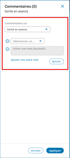 Éventuellement, entrez une note dans la case Entrer une note. Cliquez sur Ajouter une autre note pour inclure plus d'informations.