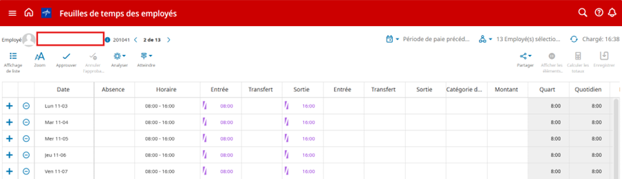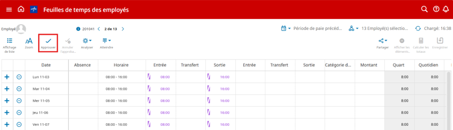 Vérifiez l'exactitude de la feuille de temps et corrigez toute absence manquée ou absence non justifiée.