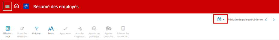 3. Dans la vue de données des employés, assurez-vous que la bonne période de paie est sélectionnée.