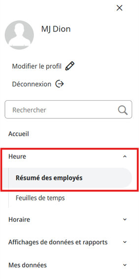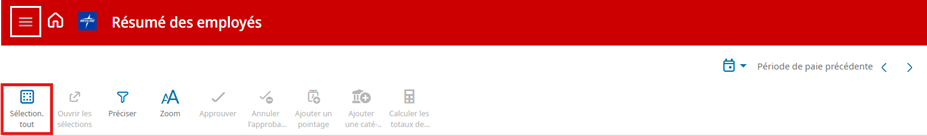 Vous pouvez approuver plusieurs cartes de temps employés à la fois à la fin de la période de paie pour le traitement de la paie en accédant au menu principal.