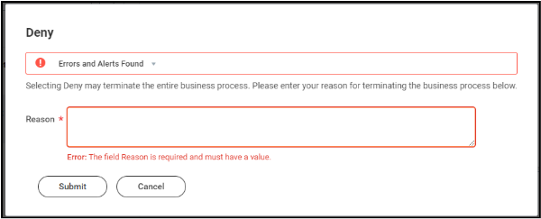 - If you Deny the course, you must provide a Reason for doing so. Click Submit when you’re done.